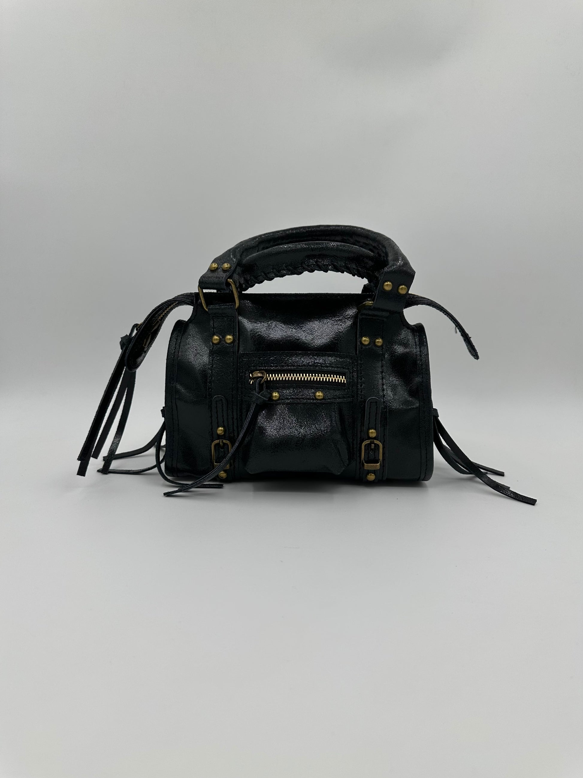 Questa borsa in pelle spazzolata con le frangie aggiunge un tocco di stile e originalità al tuo outfit. Realizzata con materiali di alta qualità, la borsa è elegante e resistente nel tempo. Portala con te per un look sofisticato e alla moda.