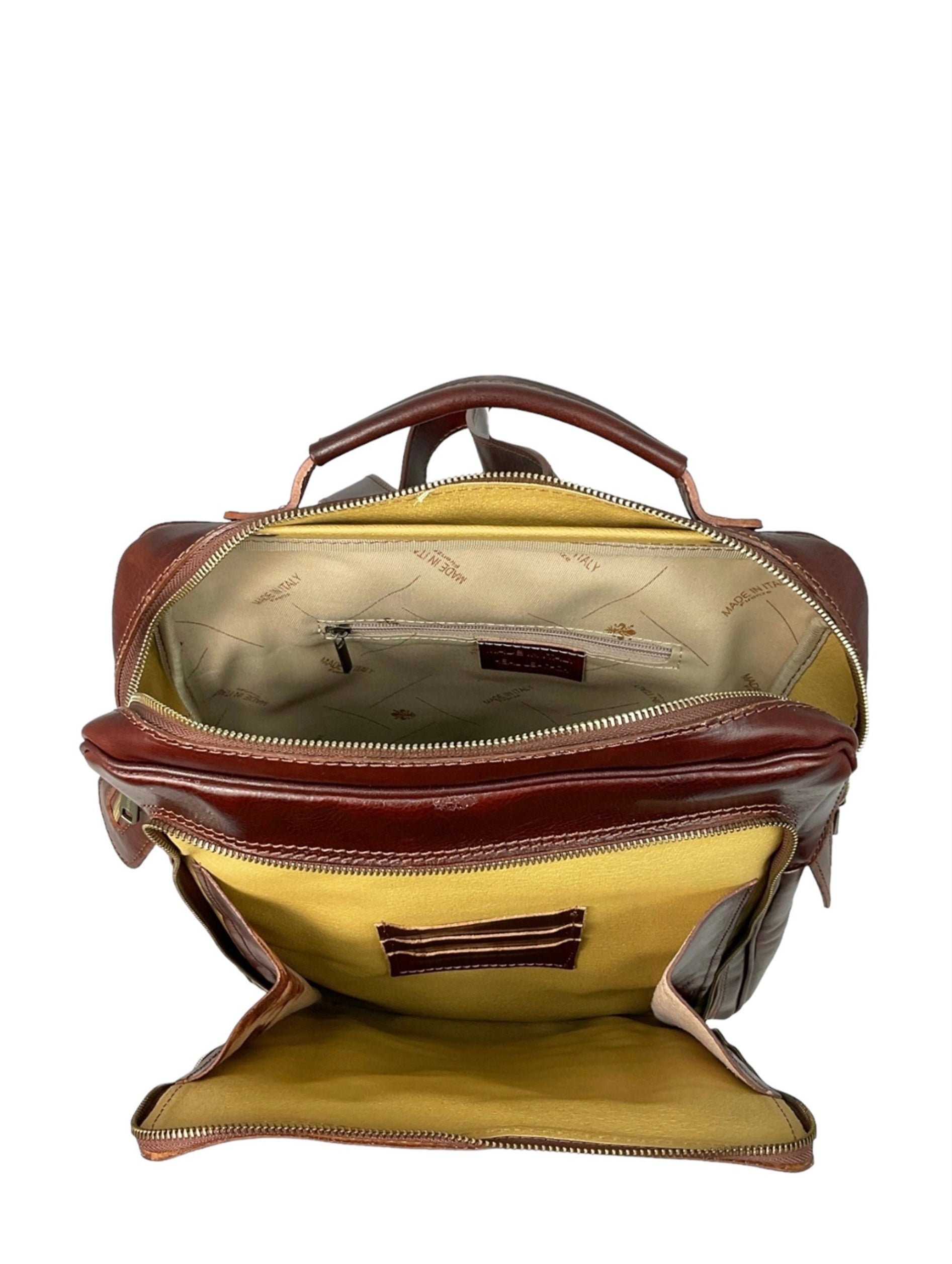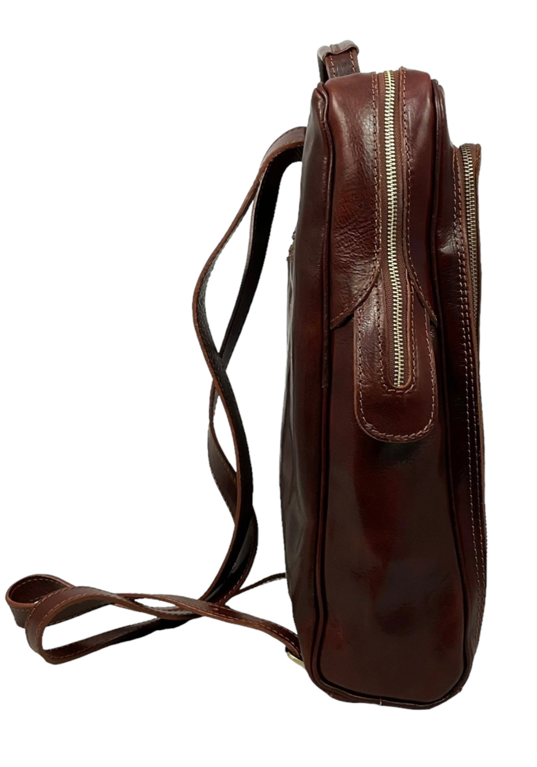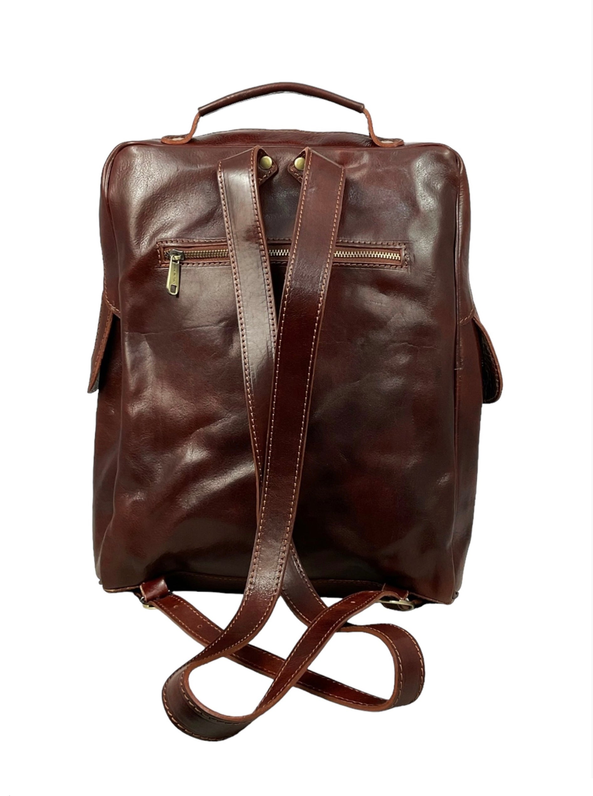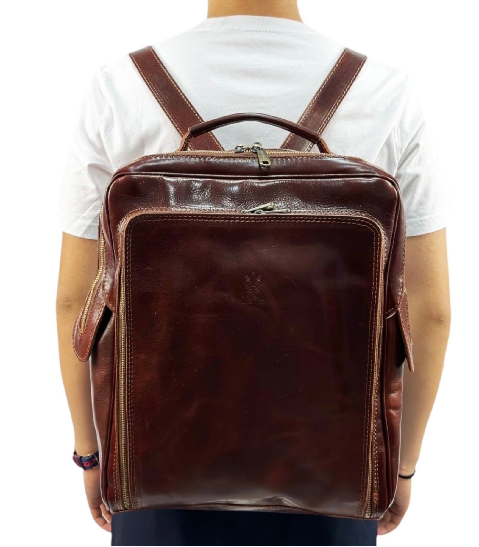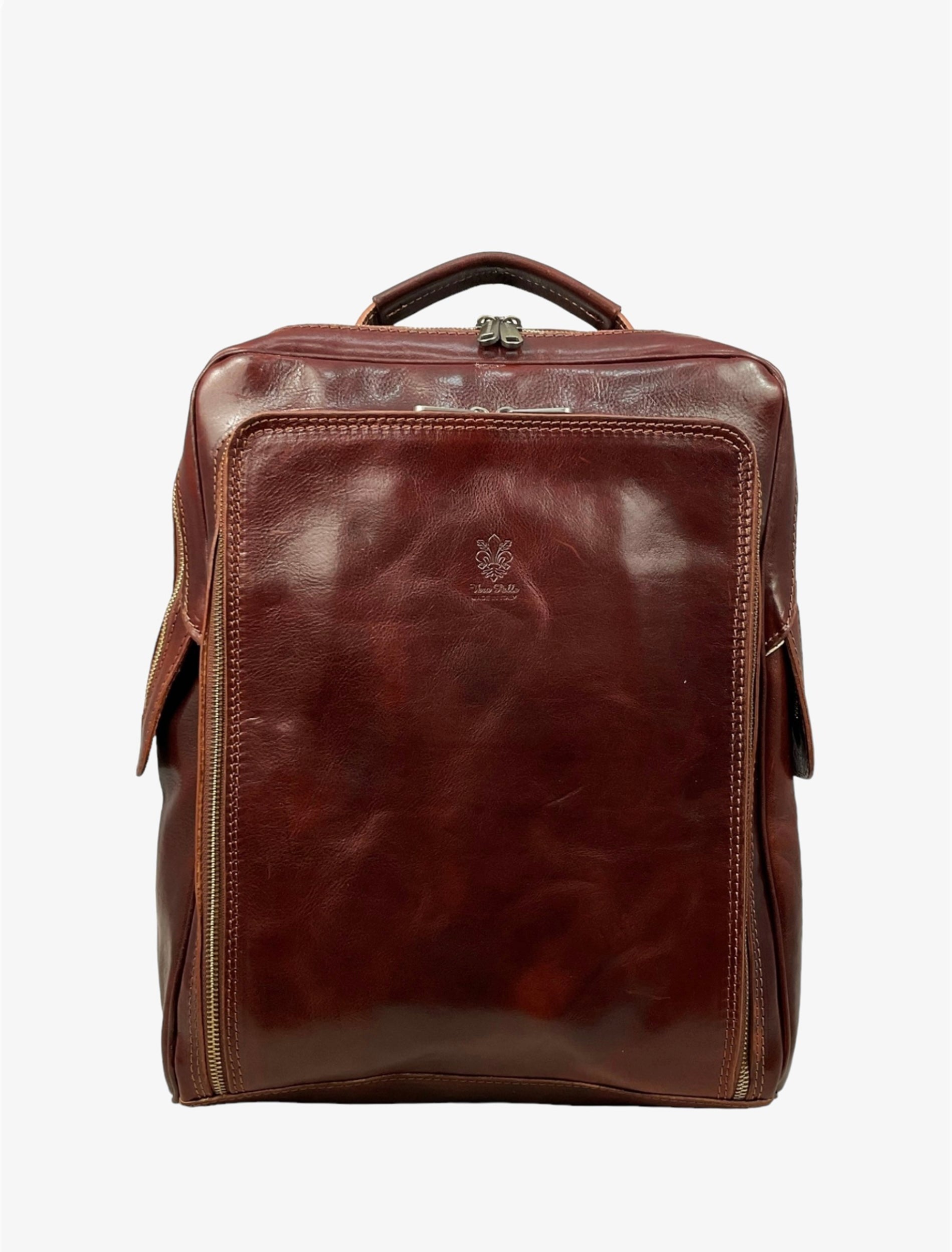 "Lo Zaino da lavoro in cuoio fiorentino è essenziale per gli uomini e le donne. Realizzato con cuoio di qualità, è dotato di due comode zip interne ed esterne per tenere al sicuro documenti e dispositivi. L'accessorio perfetto per conferire un tocco di eleganza e funzionalità alla tua attività professionale."